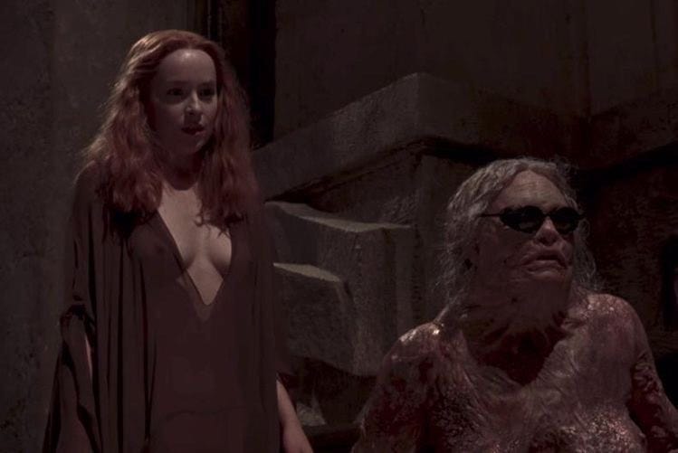 this leads me to a broader point: the body cannot evade consequence. risk is a tricky term for anyone, but particularly for me. it reflects back on itself, presenting an image of the autonomy that disappears amidst the noise of your daily existence as someone with an invisible illness. as you watch Dr Hess Green in Ganja & Hess (1973) take the risk of leaning into his desires and connecting with Ganja, there’s a brief thrill that courses through you. witnessing someone plunge into risky, life-altering choices, like drinking blood and falling for a recently widowed woman, creates a moment of ecstasy. this moment highlights the intensity of living a life that embraces consequences, unafraid to dive headfirst into the unknown. if anything, this goes to show that the body truly is a temple of absolute experience, one that cannot be framed with moral inquisitions and hypotheticals. body horror does a brilliant job of emphasising this.